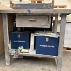 Steel plate on feeder and delivery with ramp (for plastic or wooden pallets)